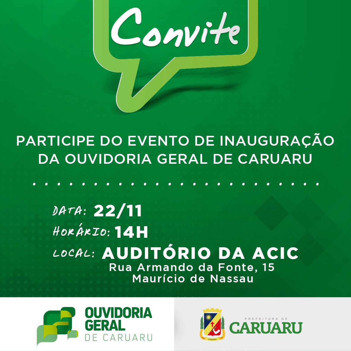 20 Novembro 2017 13 Março 2018 Convite do Evento de Inauguração da Ouvidoria Geral de Caruaru Anterior Próximo